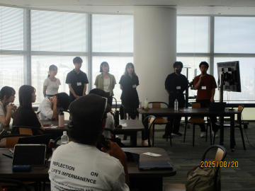 最終報告会後はチーム毎に振り返りを行いました。発表でホッとしているところですがこれは本プログラムの一番の肝であり、重要な時間と位置付けています。WS期間中の自分を振り返り、また共に走ってきたチームのメンバーからの他己評価をもらい、自分の強みを見つけたり、内省したり、参加学生それぞれが自分なりの気付きを得る時間となりました。