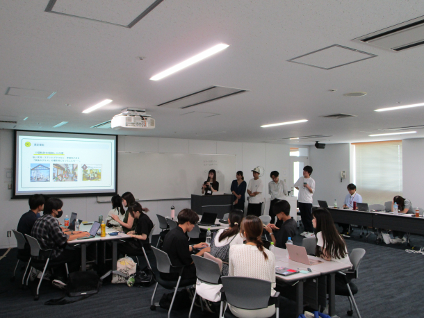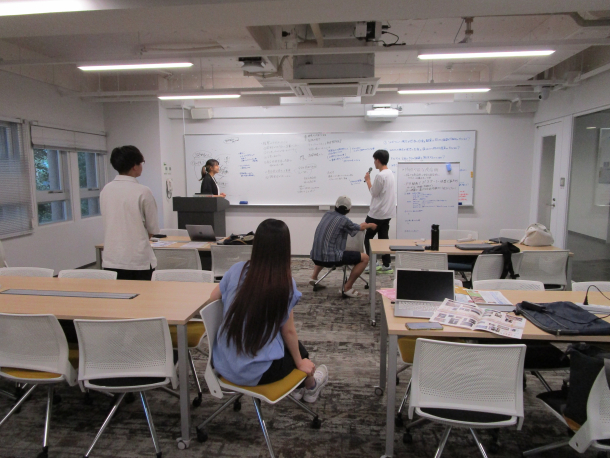 最後に事務局のGCCオフィス課長からフィードバックがあり学生達は熱心にメモを取っていました。各チームともその後、自主グループワークを実施し質疑応答で気づいたことやフィードバックをもとに今一度自分たちの考えてきた施策で良いのか、足りない部分は無いのか、元の課題からズレていないかなど考えに考えていました。