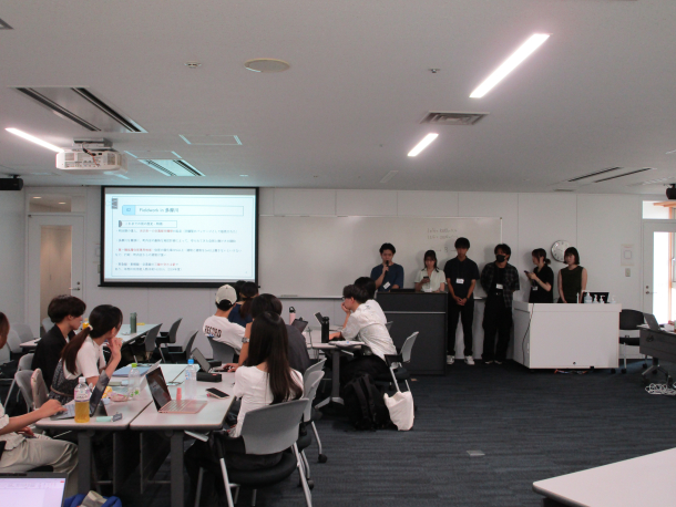 1チーム20分でどのチームとも必須の要件を入れつつ違うアプローチでのアウトプットは盛り上がり、所定の時間をオーバーするほどで奥野様からも高評価をいただきました。学生たちはアイデア発想から実現までのプロセスに気づきがあったようです。