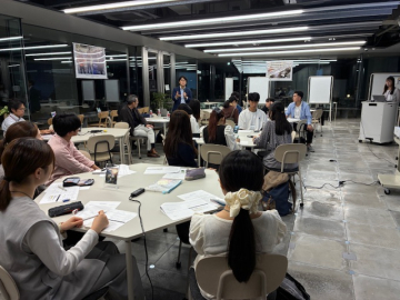 これまでの講義とチームでの議論を踏まえて、最終提案に向けての方向性と進捗状況をチームごとに報告しました。具体的な案が出ているチーム、仮説から成果物へ落とし込むプロセスを模索するチーム、たくさんのアイデアを具体化しあぐねているチーム、三者三様の現在地が示されました。読売新聞や事務局からのフィードバック、他チームからの質問などを受けて、最終報告会までにやるべきことが明確になってきました。