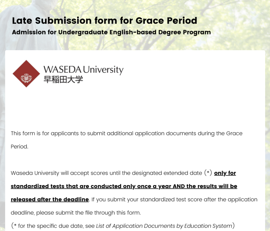 先前已向早大提出申請、欲補交學測成績的同學,請務必依下列方式於3/6(五)台灣時間16:00前完成補交。