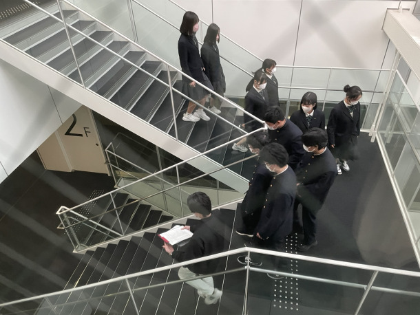 その後、職員からTWIns施設紹介、ツアーガイド学生の自己紹介を経て、館内ツアーに出発。