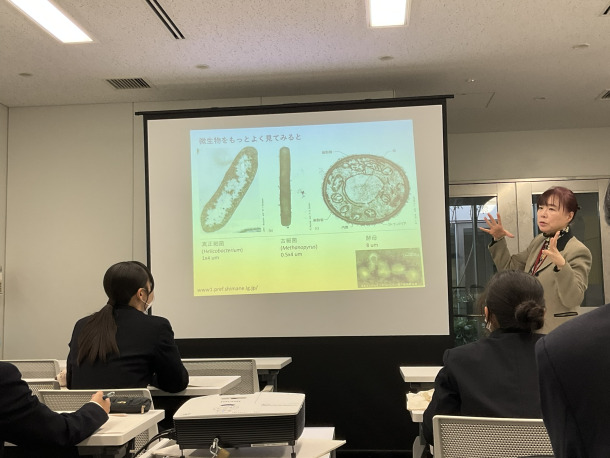 まず模擬講義では、早稲田大学先進理工学部生命医科学科の竹山春子教授に「シングルセル技術による有用微生物の詳細解析と今後の展望」というテーマでお話いただきました。