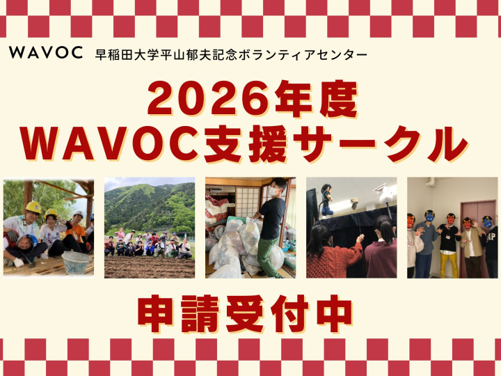 2026年度WAVOC支援サークル 申請受付中(2026/2/2まで) 平山郁夫記念ボランティアセンター(WAVOC) では、主体的に社会問題に気付き、考え、行...