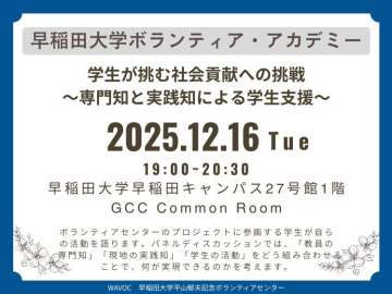 【参加対象者】早大生、教職員、校友 ※他大学の学生も大歓迎です。