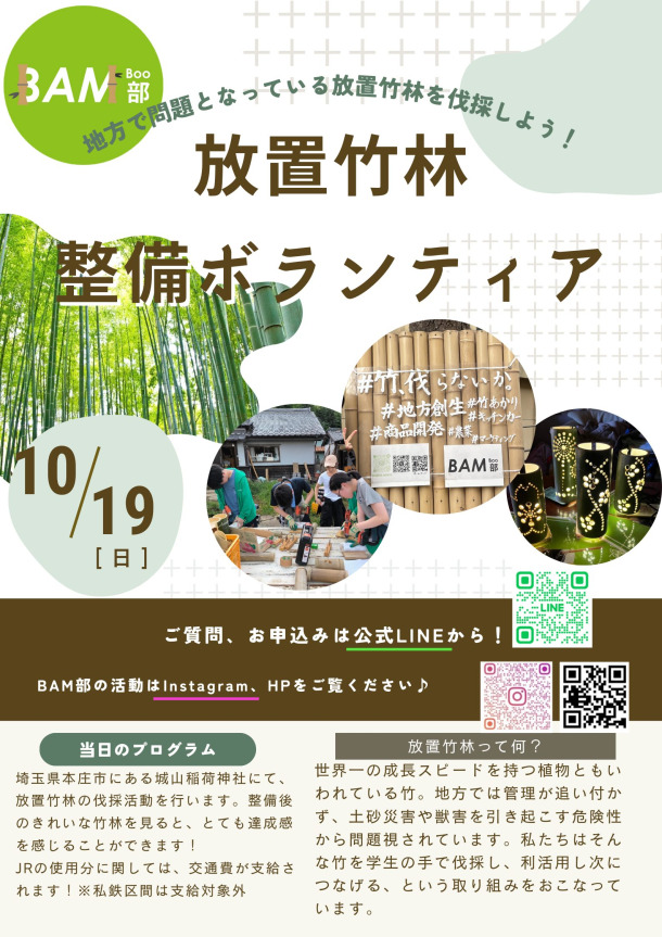 【BAM部】 「放置竹林×ものづくり体験」 参加者募集のお知らせ(2025/10/19)