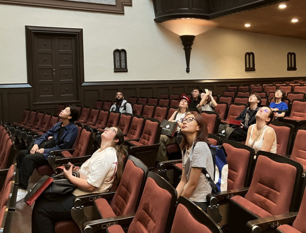 One of the highlights was a special tour of Okuma Auditorium, where participants were able to enter not only the main hall but also the VIP room and Romanesque-style cloister areas usually closed to the public. From there, we enjoyed a beautiful view of the Okuma Garden and took memorable photos together.