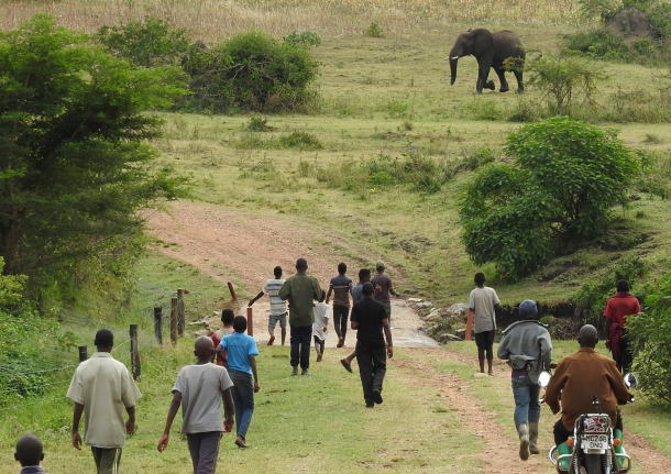 このような大型野生動物との軋轢は、日本に限ったことではありません。アフリカ・タンザニアでは、野生のゾウが村に出没し、畑の作物を荒らし、ときに人命を奪っています。年間およそ50人が、ゾウによって命を落としています。