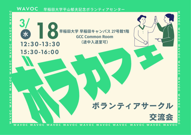 3月18日(水)に、早稲田大学の学生サークルの皆さんを対象に、【WAVOC ボランティア・カフェ】を開催します!