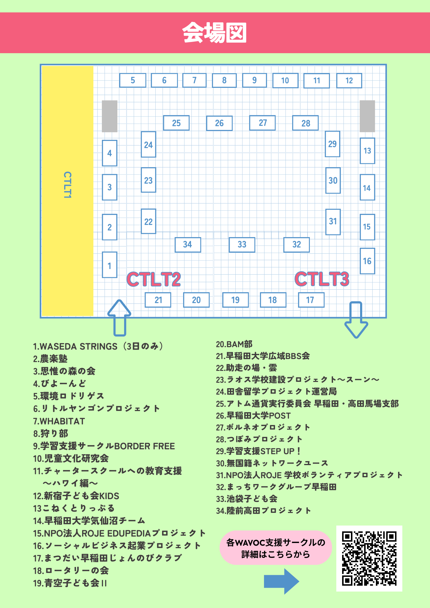 ※会場内の各団体のブース配置については、こちらをご覧ください。