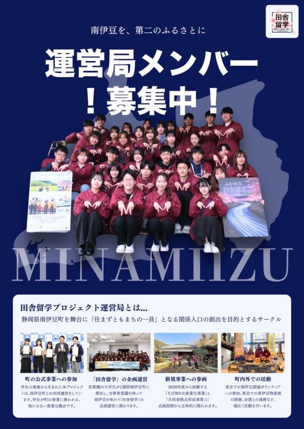 この度、南伊豆町との共同事業「田舎留学プロジェクト」の企画・運営に携わる、運営局の新メンバーを募集することとなりました。