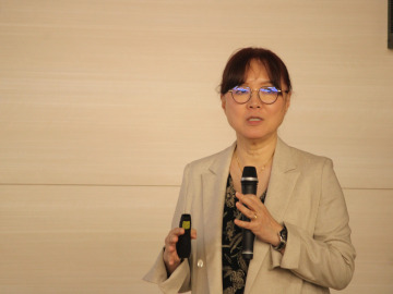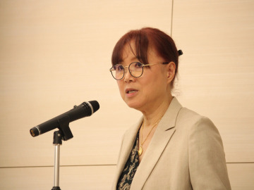 開会の挨拶をされる 竹山春子 カーボンニュートラル社会研究教育センター副所長・理工学術院教授