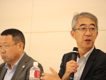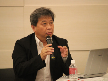 本シンポジウムでは、主催者である当センター副所長の竹山春子 理工学術院教授からのご挨拶の後、ロイヤルホールディングス株式会社の菊地唯夫 代表取締役会長・料飲稲門会会長より「食産業の持続的成長に向けて」と題した基調講演がありました。