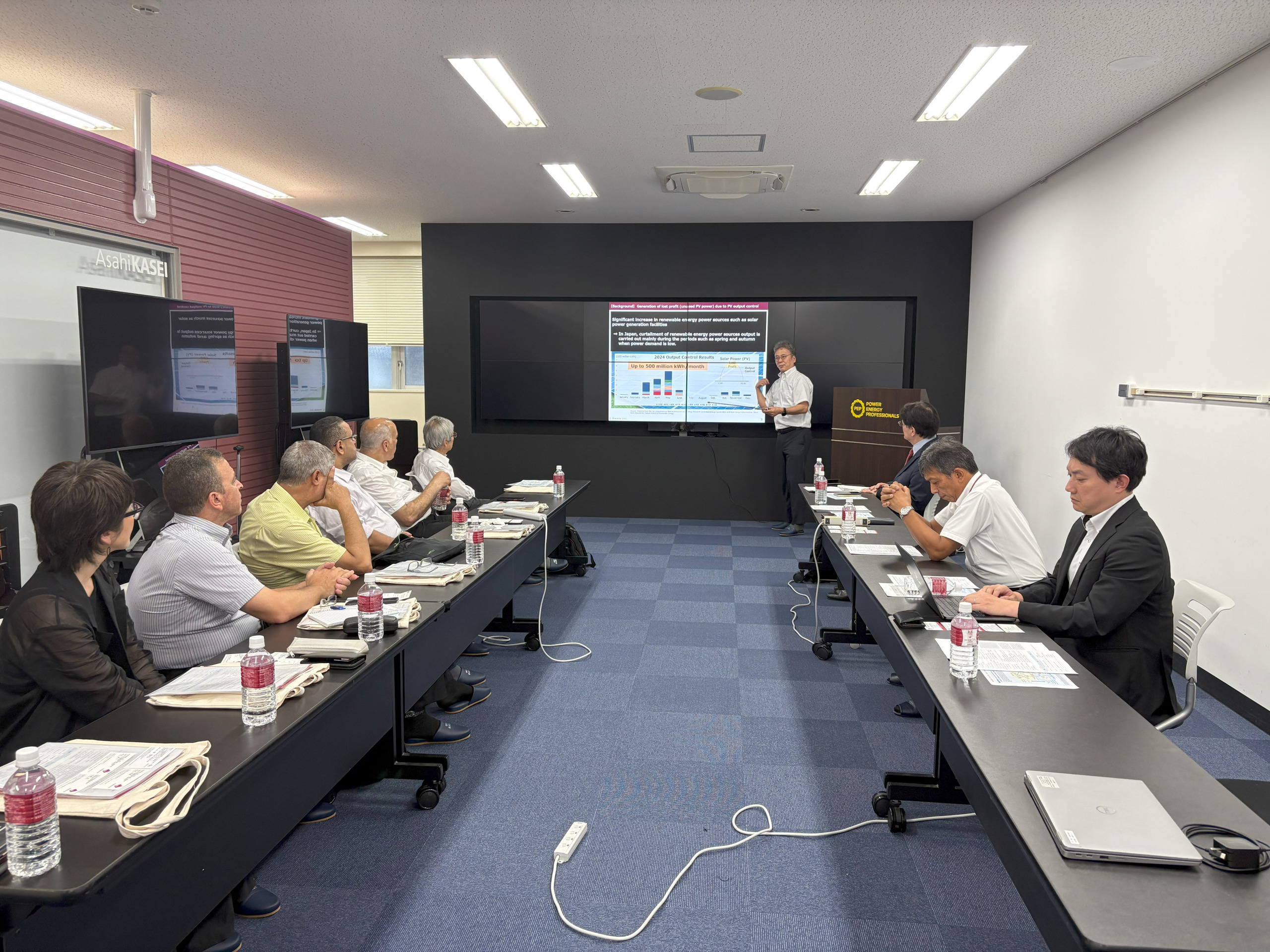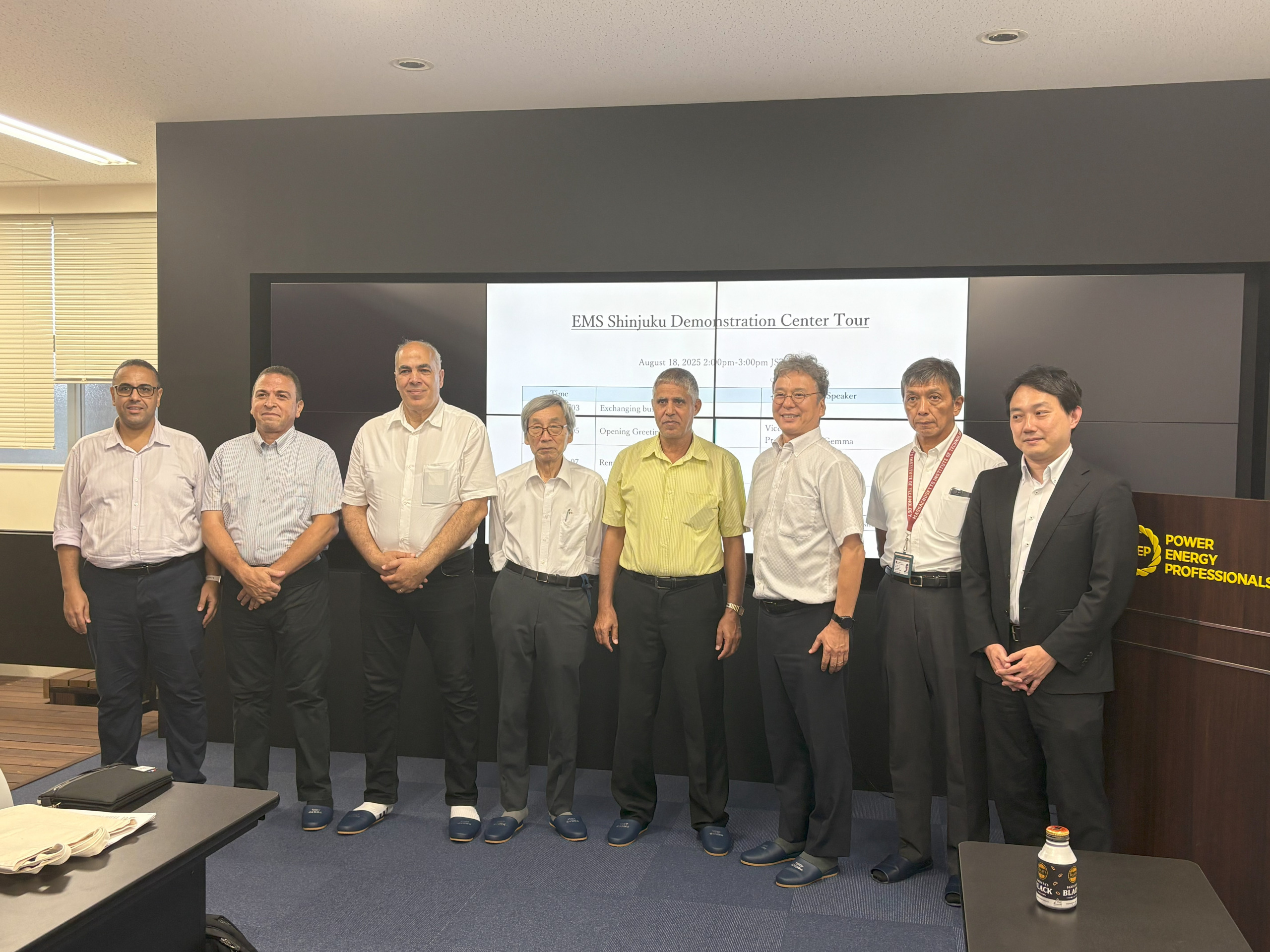 今回の訪問は、8月20日過ぎから横浜で開催される、日本政府、国連、国連開発計画(UNDP)、世界銀行、アフリカ連合委員会(AUC)が共催するアフリカ開発会議(TICAD9)に伴う来日に合わせて行われました。E-JUSTの第一副学長には早稲田大学名誉教授で早稲田大学前副学長の橋本周司先生が就任されており、E-JUSTのエネルギー関係プロジェクトチーム(代表は学事担当副学長のSamae Nada教授)やJICAの担当の皆様とともにACROSSの新宿実証センターに訪問いただいたものです。