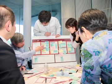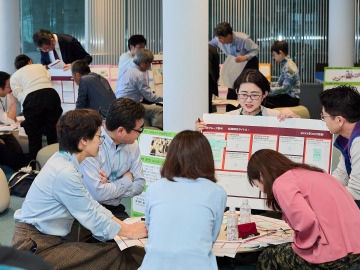 清水建設NOVAREのメンバーや本学研究戦略センターのURAがファシリテーターとして各グループに参画し、各参加者による分野や立場を越えた活発な意見交換が行われ、白熱した議論が展開されました。参加者同士の新たなつながりも生まれ、大変盛況のうちに終了しました。