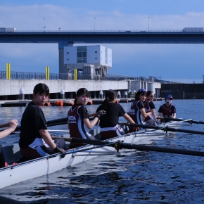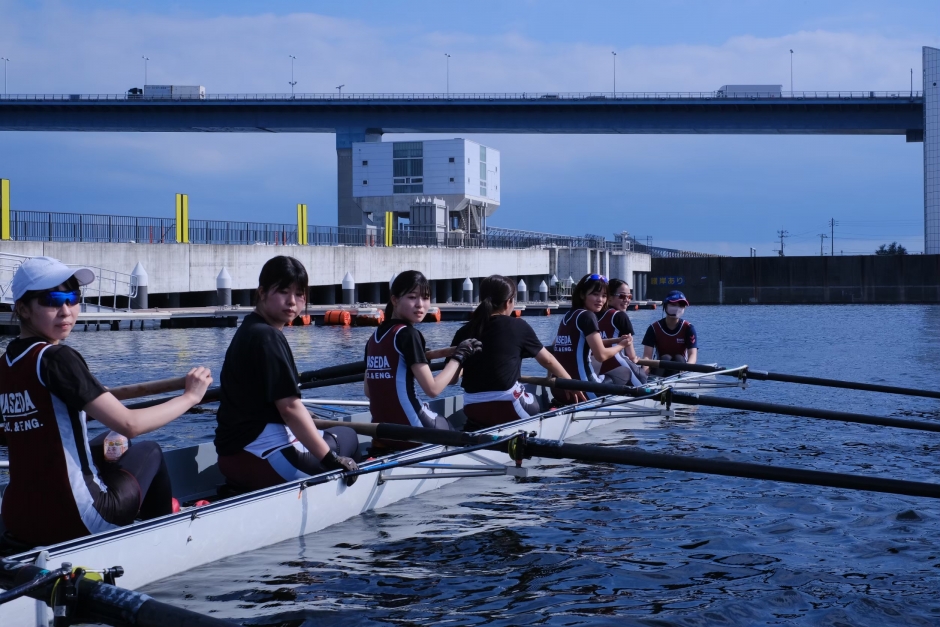 /We, the Science and Engineering Rowing Club, are working to balance classes and rowing. Busy science and engineering students also get together to practice in between classes (humanities students are also welcome! (About 10 members of the humanities club are also active in the club). Members range from those who are seriously challenging to be the best in Japan to those who enjoy rowing only once a week. In spring, we also participate in the Waseda-Keio Regatta held on the Sumida River. We row alongside the Tokyo Skytree amidst loud cheers. It will surely be a memorable experience of a lifetime. More than 90% of the athletes who participate in such big competitions started rowing at university. Even those who have never held an oar before can improve because the coaches and seniors guide them well. The Science and Engineering Rowing Club is probably the only club that allows students who started rowing at university to participate in the Waseda-Keio Rowing Competition. If you want to challenge something new, compete in the Waseda-Keio Rowing Championships, or enjoy sports while balancing your studies, join the Rowing Club!
