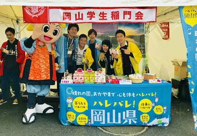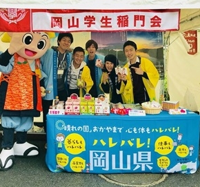 毎年秋に稲門祭に出店し、きびだんご等岡山の名物を販売したり、教務部主催の地域フォーラムに参加して大学説明を行ったりと、2017年度から本格的に活動を再開致しました。活動を通して岡山出身在学生同士の親睦を深め、在学生と校友の親睦を深めていきます。また、毎年岡山県主催のパーティに招待されるなど活動は多岐に渡ります。岡山出身の皆さん、是非活動に参加してみませんか?