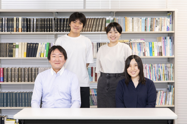 (前列左から)小西弁護士、宮野弁護士、(後列左から)金井さん、西村さん。早稲田キャンパス 28号館早稲田大学リーガル・クリニックにて