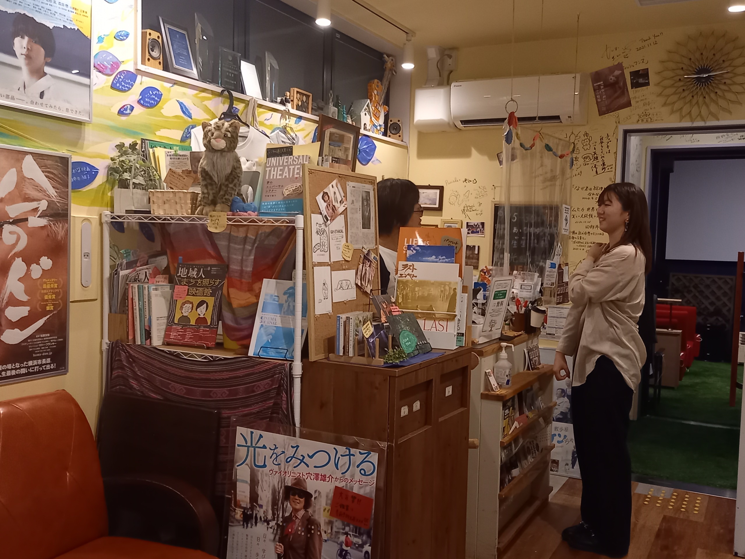自身が企画した「ユニバーサルシアターでの映画鑑賞」にて(2023年6月)。終了後に先方担当者と話している様子