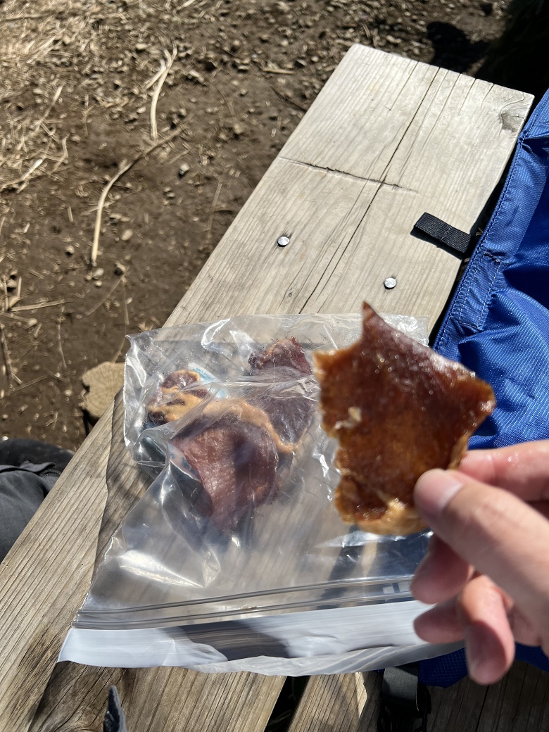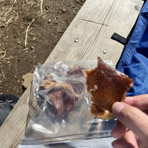 山頂での極上の時間。調理用具のコッヘルとガスバーナーは小学生からの友