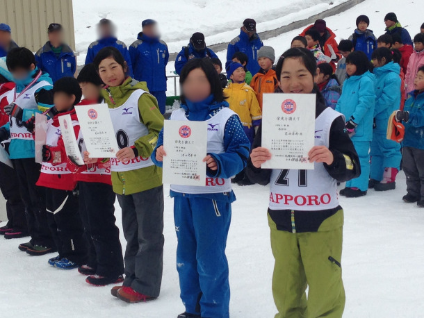 小学5年生で出場した男女混合の大会では、優奈さん(右から3人目)が8位、春香さん(右端)が10位に入賞した