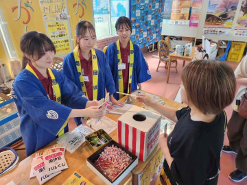 写真右:南伊豆町商工会とのコラボレーションが実現し、町のイベントの抽選会を手伝いました