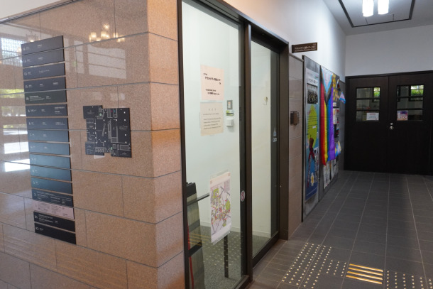 写真左:早稲田キャンパス 3号館1階を入ってすぐ左手にある、ARC(身体障がい部門)入り口