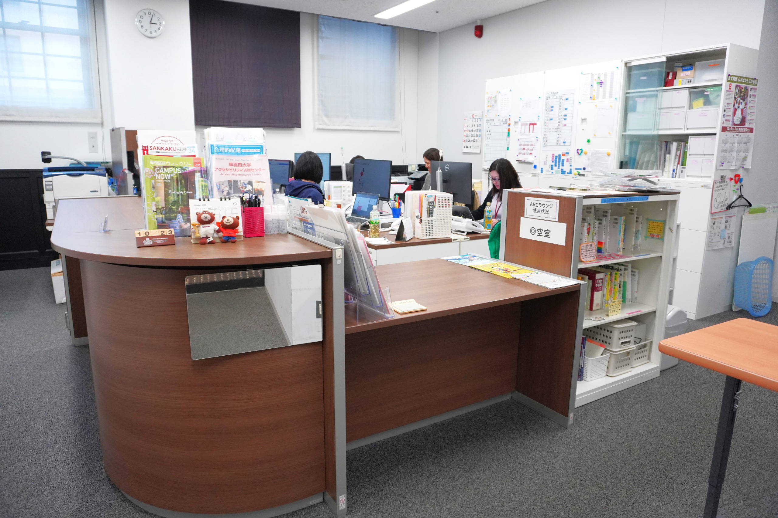 早稲田キャンパス 3号館1階にあるARC(身体障がい部門)のカウンターの様子