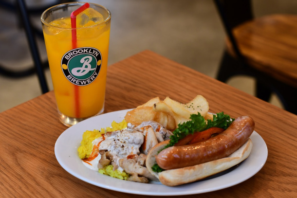 自家製ソーセージをチキンオーバーライス、ポテトフライと一緒に味わえるお得な「学生セット」