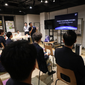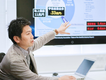 J-SPARCのパートナー候補企業に宇宙産業の動向を紹介しているところ