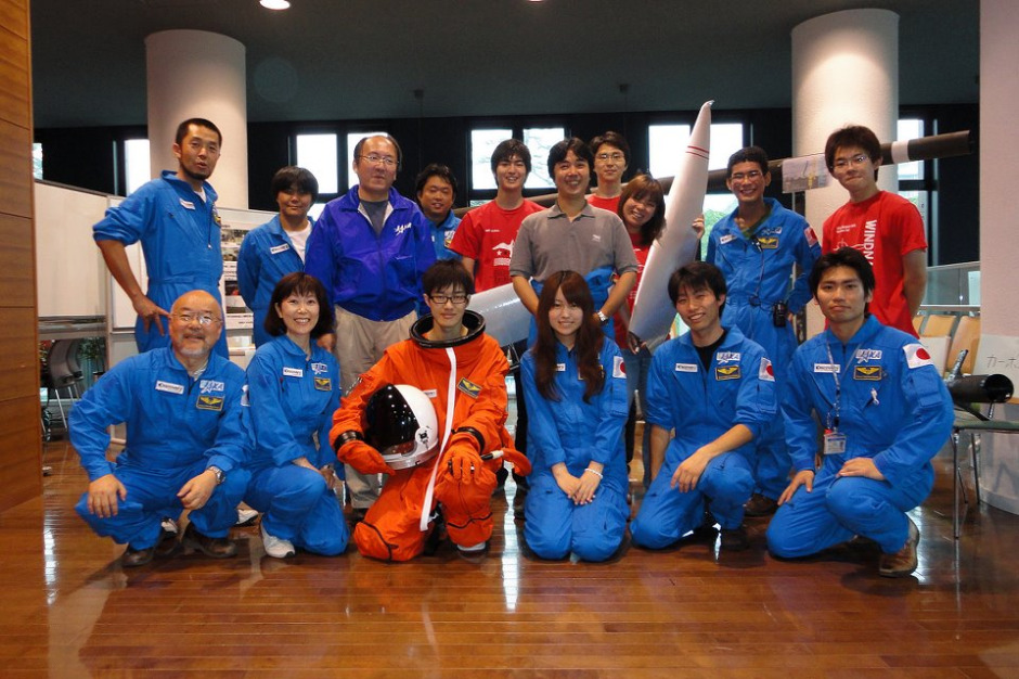 2005年10月、鹿児島県種子島宇宙センターで行われたJAXAの内定式で同期との集合写真。後列左端が菊池さん