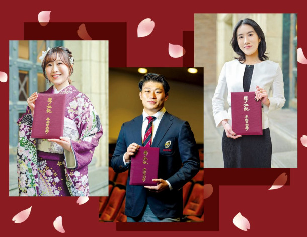 卒業生の皆さん、ご卒業おめでとうございます。多くの早大生を紹介してきた『早稲田ウィークリー』。代表して、「ぴーぷる」や「フォーカス」のコーナーに登場した3人の卒業生に今後の抱負を聞きました。