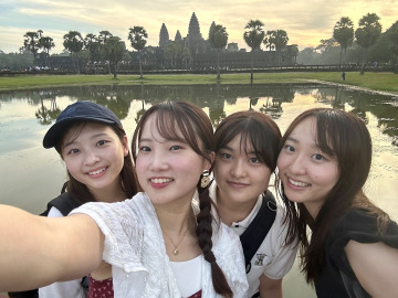 写真右:大学4年生の時、カンボジアのアンコールワットで友人たちと(左端が高橋さん)