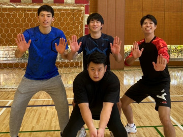 写真左:2025年4月、安治川部屋へ出稽古に行った時の写真。一番左が川副選手