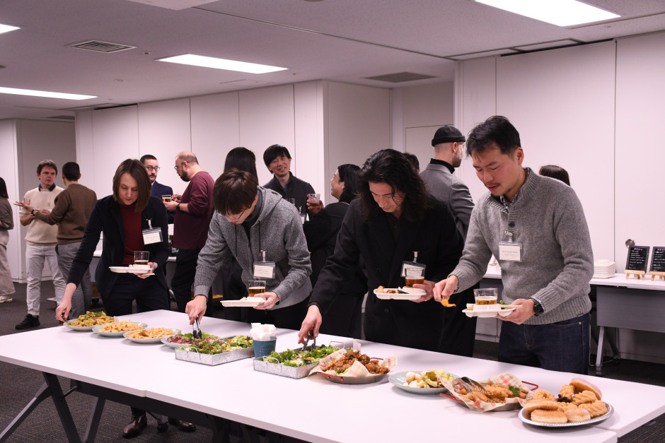 In the career talk session led by WIAS alumni, Professor Toshinori Fujie (School of Life Science and Technology, Institute of Science Tokyo), Associate Professor Susumu Annaka (Faculty of Social Sciences, Waseda University), and Associate Professor Garry Kong (Graduate School of Humanities and Social Sciences, Hiroshima University) shared highly insightful perspectives based on their own research and experiences in career development. Following a coffee break, the flash talk session resumed with a presentation by Adjunct Researcher Áron Fittler, followed by brief research presentations by three WIAS members, as with the first half. These presentations can be said to have served as a major catalyst for the research exchanges that followed.