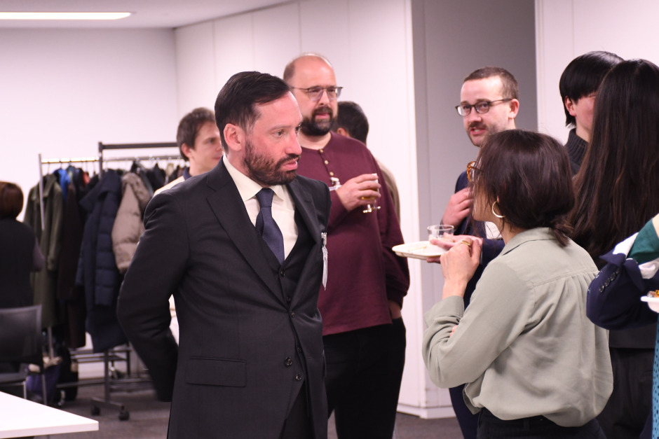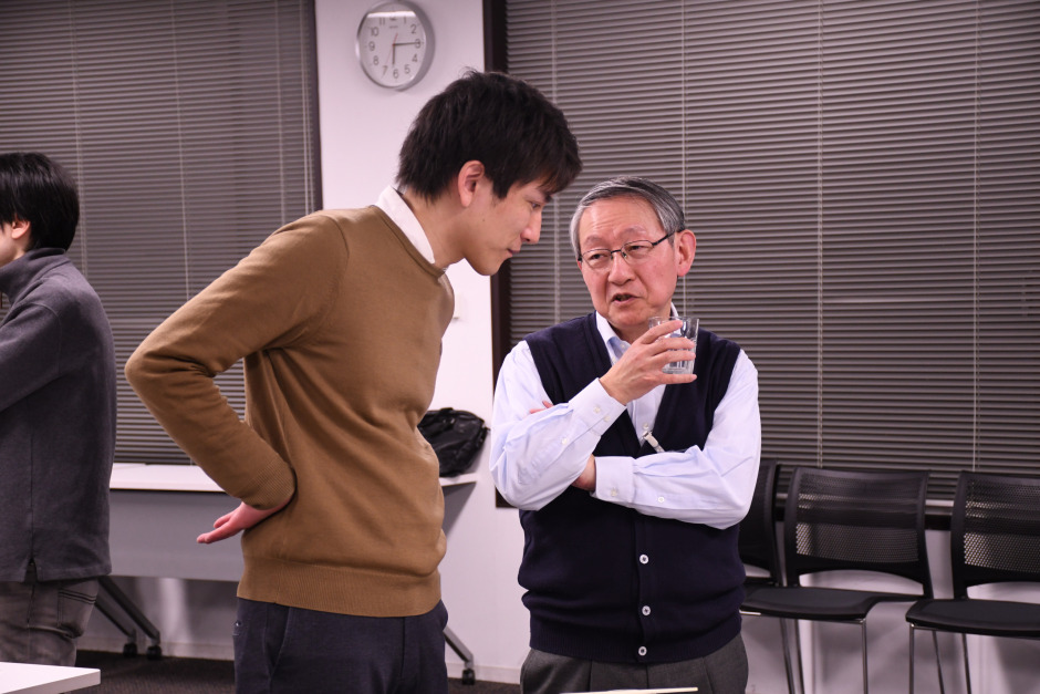In the evening, the venue was moved to the third floor of Okuma Kaikan, where a standing buffet-style reception was held. Beginning with a toast by former Director Professor Ken-ichi Akao (Faculty of Social Sciences, Waseda University), participants enjoyed food and drinks while deepening mutual interaction. Finally, Professor Toshihide Arimura (Faculty of Political Science and Economics, Waseda University), who has also served as Director of the Institute from 2020 to 2022, offered concluding remarks summarizing the event, bringing the entire program to a close.