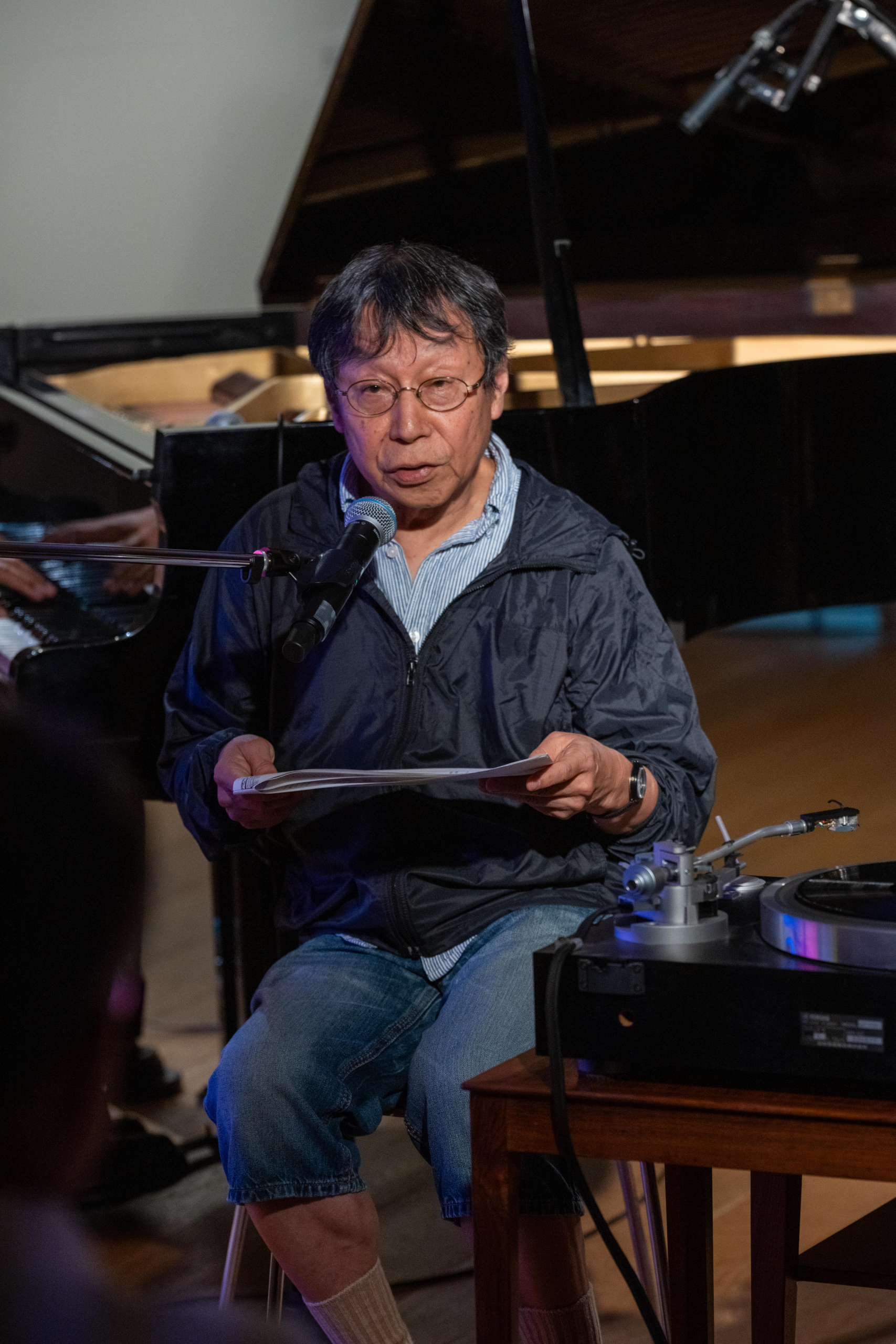 「アート・ブレイキーのグループには、サックスやピアノなど5人のソリストがいて、ソロパートを演奏する時は、それぞれのキャラクターが音に表れ、まるで異なる言語で話しているかのように聴こえます。また、ブレイキーはよく、『もし演奏を間違えたら、もう一回、そのフレーズを弾くこと。そうすれば、新しいアイデアが生まれるから』と語っていました。音楽家にとってソロ演奏は過去を語ると同時に、いかに未来を編集するかが重要になります。村上作品を読んでいると、しばしば物語の世界に入りこんだような気分になりますが、それは作者や登場人物たちが“自己編集(=self-editing)”をし続けているからだと思います。村上さんと同様に、ブレイキーは音楽家として未来を編集する素晴らしい能力を持っていたのだと思います。」