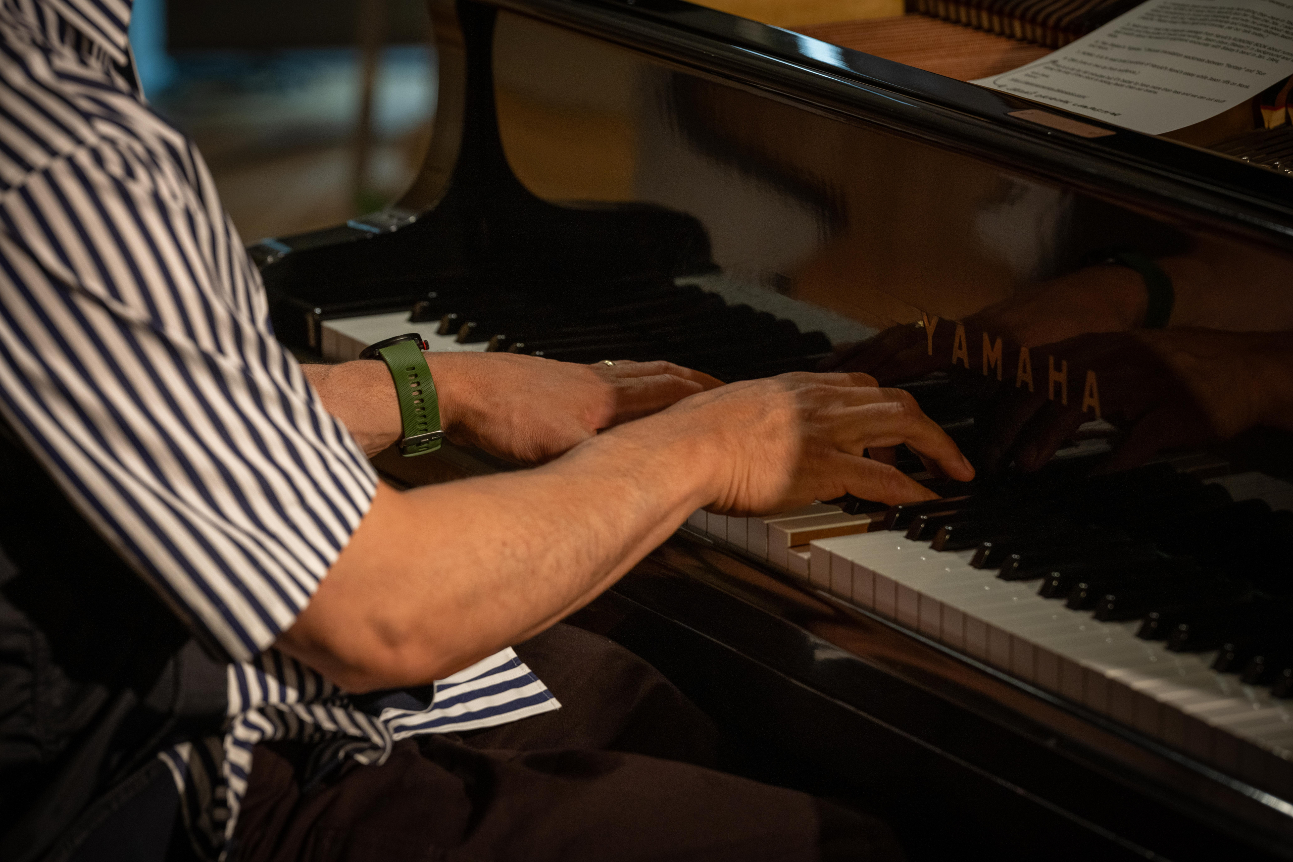 会場内に、「イパネマの娘(The Girl from Ipanema)」(アントニオ・カルロス・ジョビン作曲)が流れるなか、静かにモランさんがグランドピアノの前に座り、同曲のメロディに合わせて、陽気なリズムを奏で始めました。