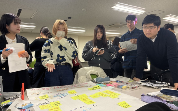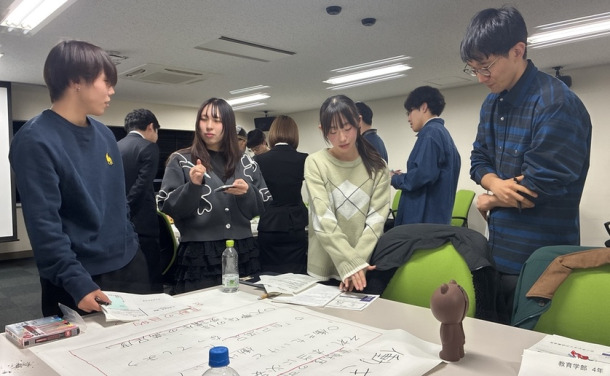 各班のアイデアを模造紙にまとめ、ポスターセッション形式で情報を共有しました 。他班との質疑応答を通じ、実現可能性や運用のデメリットに関する指摘を反映させることで、提案内容をより具体的な実装レベルへとブラッシュアップしました 。