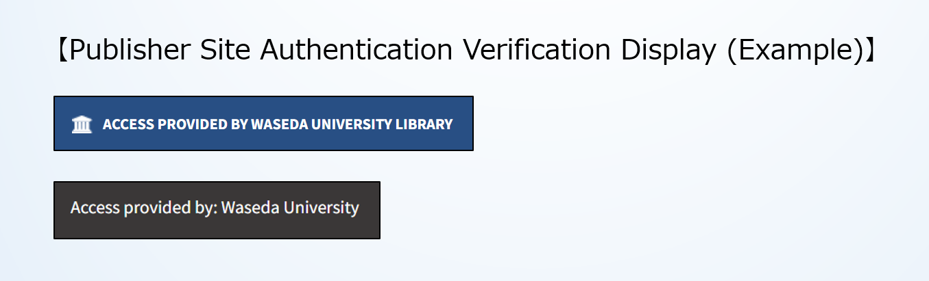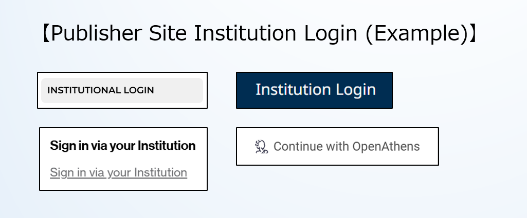 A5. The institution name may appear differently depending on the publishers, such as “Waseda University” or “Waseda Univ.” In addition, some publishers may not support institution authentication (SSO). If Institution Login is not available, please use the method described in step 1 of Usage Procedure: “1. Access from search results.”