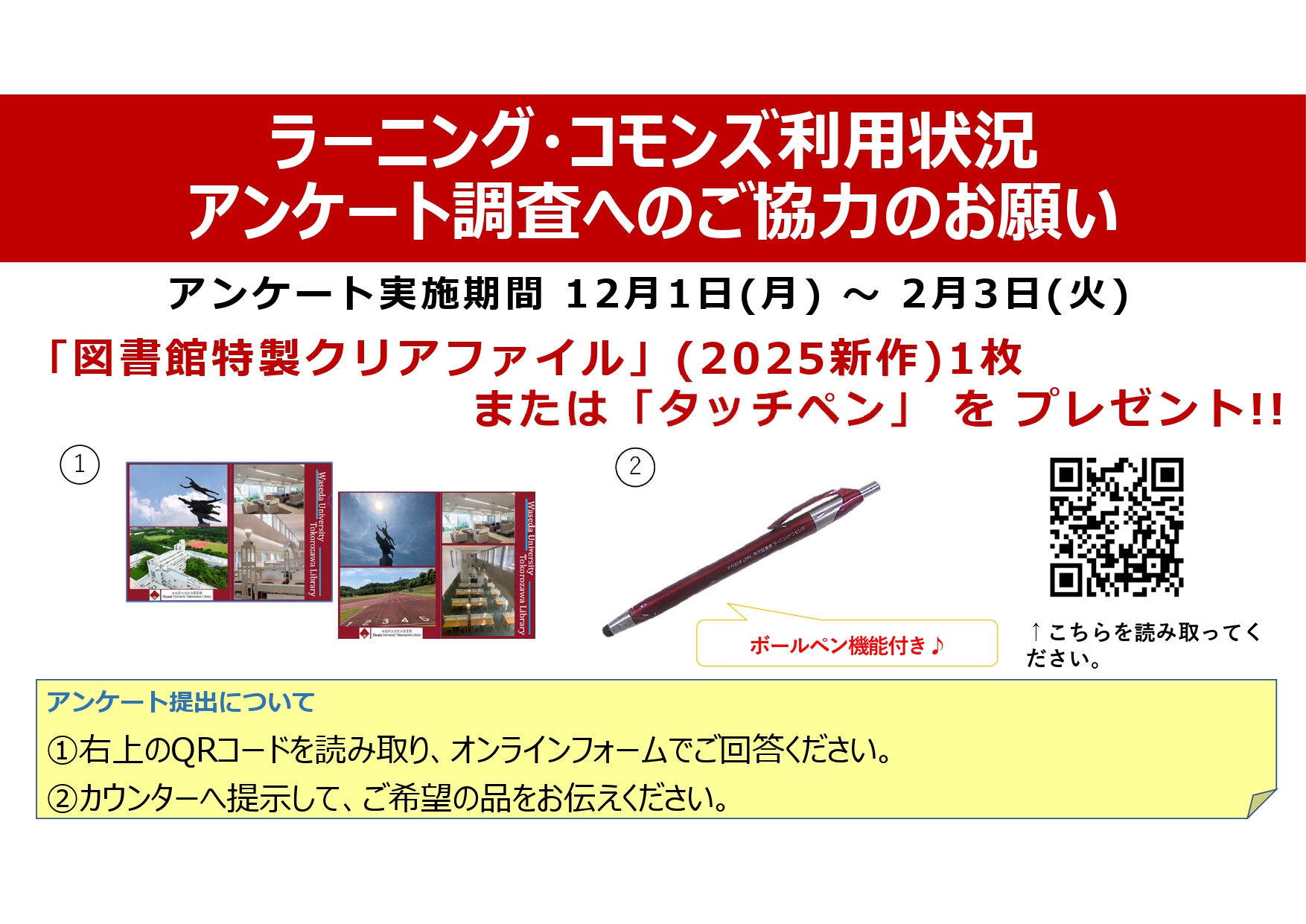 所沢図書館 ラーニング・コモンズ利用状況 アンケート調査へのご協力のお願い(2025年度)