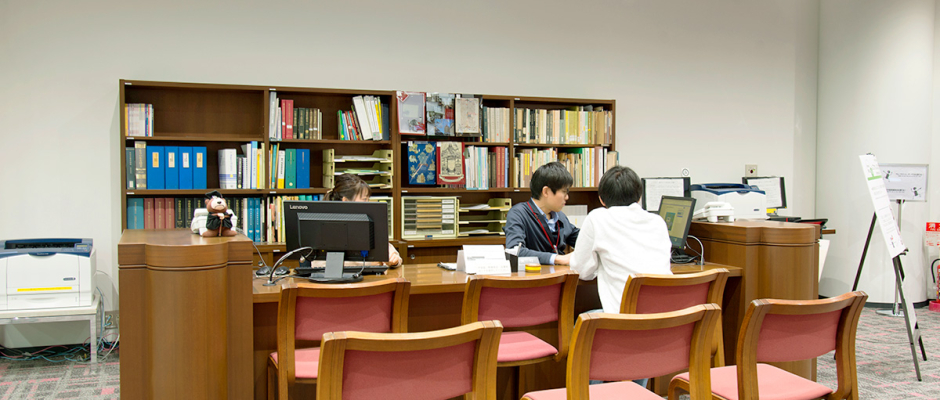 各図書館のレファレンスカウンターでは、資料や図書館のサービスについての問い合わせにお答えしています。「オンラインレファレンス」もご利用ください。