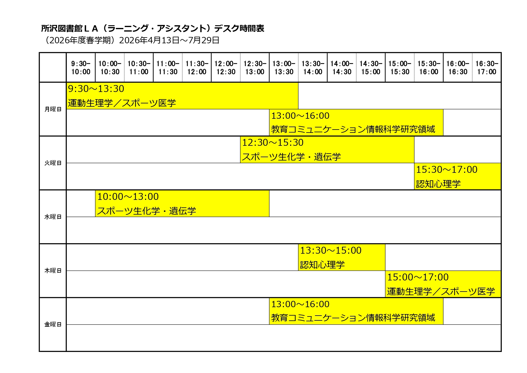 LAの専門分野に限らず、レポートや卒論の進め方や資料の探し方などについても気軽にご相談ください。事前の予約は不要です。