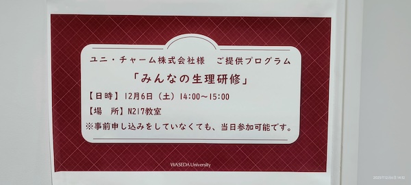 (株)ユニ・チャーム社提供「みんなの生理研修」を12月6日(土)14時〜15時に実施しました。このプログラムは、「生徒・教職員にとって居心地の良い学校」を目指す...