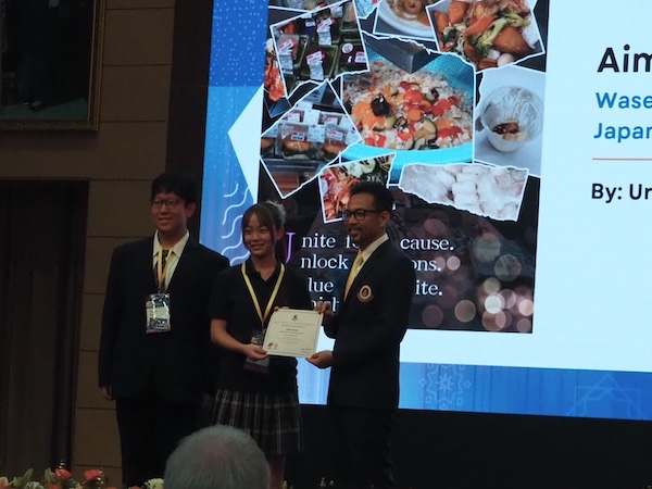 午前中、閉会式。本庄高等学院の研究は”Environmental Impact Award”を受賞した。また、研究発表と同時に、研究内容を絵画で表現する”Art of Science and Innovation Projects”コンテストも行われ、2年大塚麗・越智大功の作品が”Bronze Medal Awards”を受賞した。