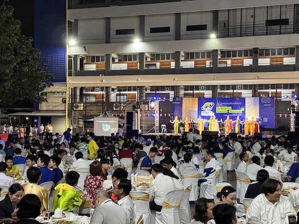 午前中の開会式はMaha Chakri Sirindhorn王女様がご臨席なさるため、参加者はセキュリティチェックのため6時半から会場入り、開会式のリハーサルを行う。会場はMahidol大学の講堂。ISSFに長年貢献した二人の先生の表彰、基調講演の後昼食休憩。物々しいが、参加学院生にとっては、タイ国民の王室に対する敬愛を知る貴重な体験。開会式終了後、ご参加なさっていたタイ王国駐在日本国特命全権大使大鷹正人様が日本の生徒たちにメッセージを下さいました。午後、MWIT管弦楽団の演奏会。その後、ポスターセッションと、参加者全員の記念撮影。夕方、MWITに場所を移し、歓迎夕食会。