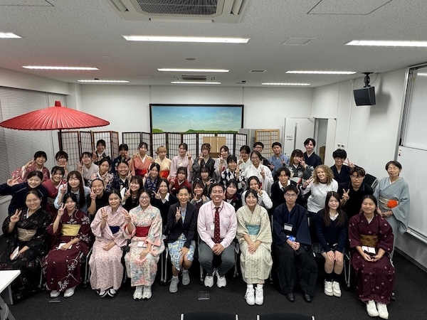 午後、茶道部主催歓迎お茶会。ここでタイの生徒たちは着物体験。
