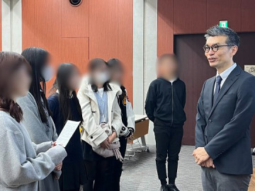 式典には、寄贈元である公益財団法人三菱UFJ環境財団を代表して、三菱UFJ銀行神楽坂支店の澤田支店長(本庄高等学院出身)が出席しました。さらに、本庄市教育委員会の下野戸教育長をはじめとする関係者の方々も来賓として参加し、地域・卒業生・大学のつながりを象徴する催しとなりました。大学からは井上常任理事、半田学院長などが出席し、参加者全員で記念撮影を行いました。