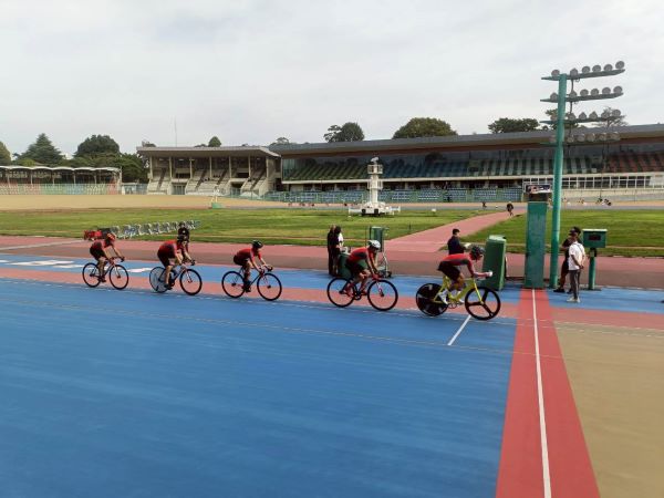 県新人大会トラックレースでの周回練習(10月3日、大宮双輪場)