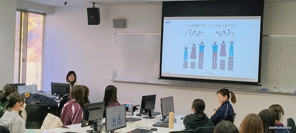 (株)ユニ・チャーム社提供「みんなの生理研修」を12月6日(土)14時〜15時に実施しました。このプログラムは、「生徒・教職員にとって居心地の良い学校」を目指す取り組みの1つとして開催しています。男女を問わずに参加者を募集しました。同時に、7月より女子トイレにおける生理用品ディスペンサーとディスポーザー設置の実証実験を行っています。
